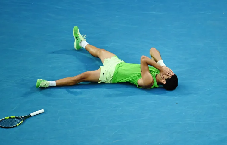 Carlos Alcaraz became the youngest man in the Open era to advance to the finals of all four Grand Slam events after overcoming cramping and injuries to defeat Alexander Zverev in a thrilling, momentum-swinging five-set match.
